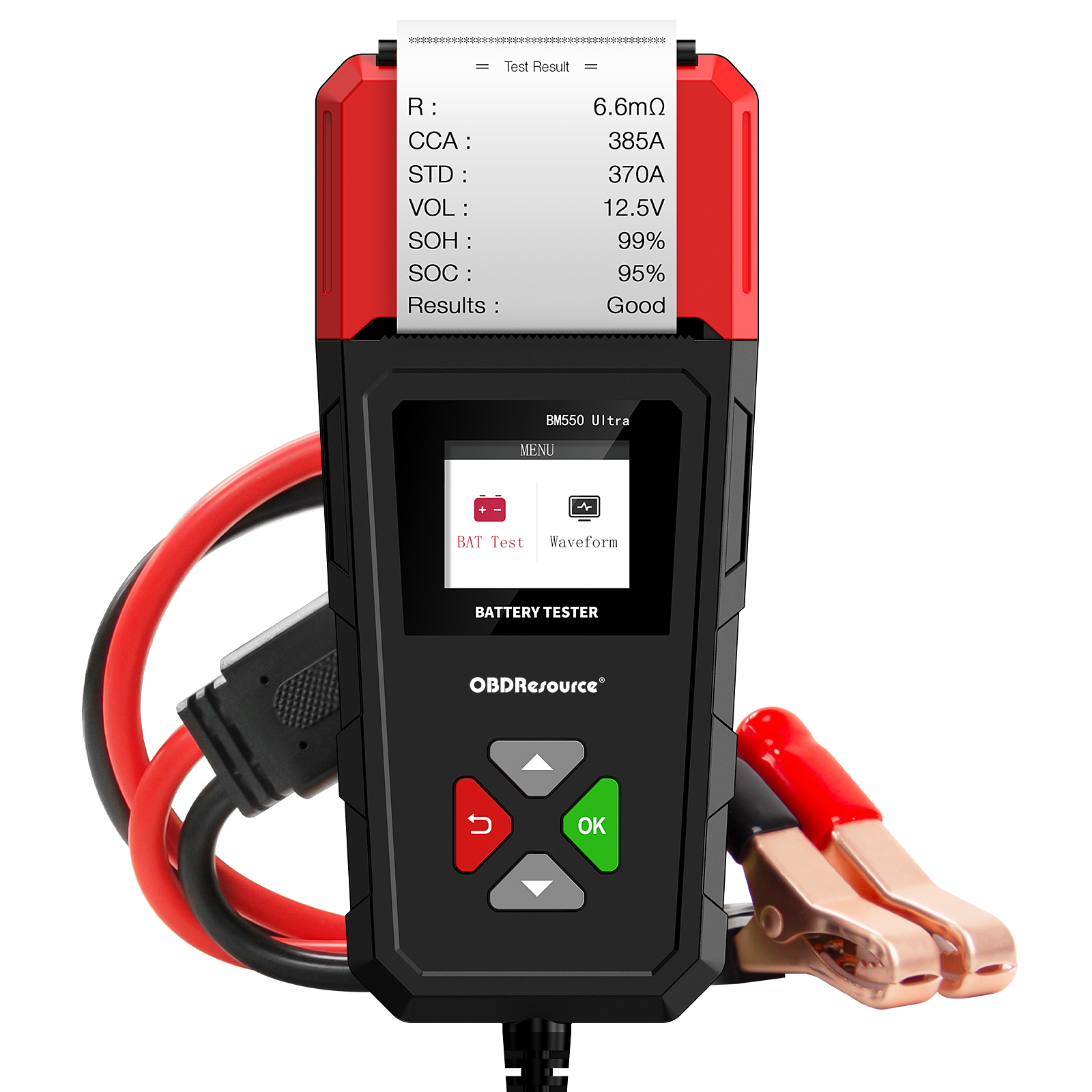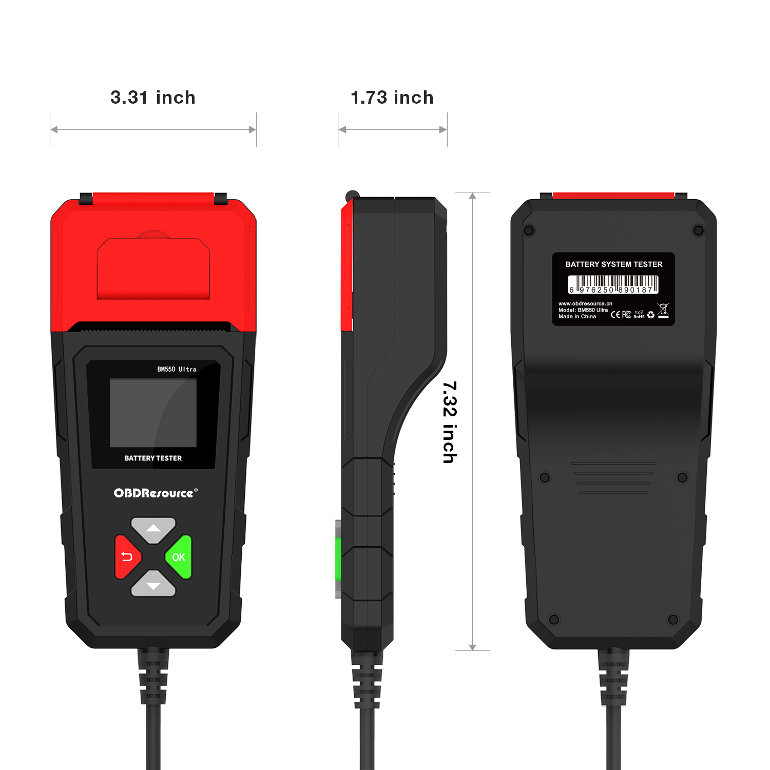 BM550U Professional Battery Analyzer adopts the latest internal resistance testing method for measurement. Through OBDResource's self-developed algorithm, it accurately scans batteries and provides precise test results, including internal resistance testi